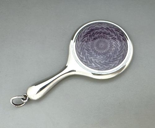 Lovely Silver & Guilloche Enamel Handbag / Chatelaine Mirror