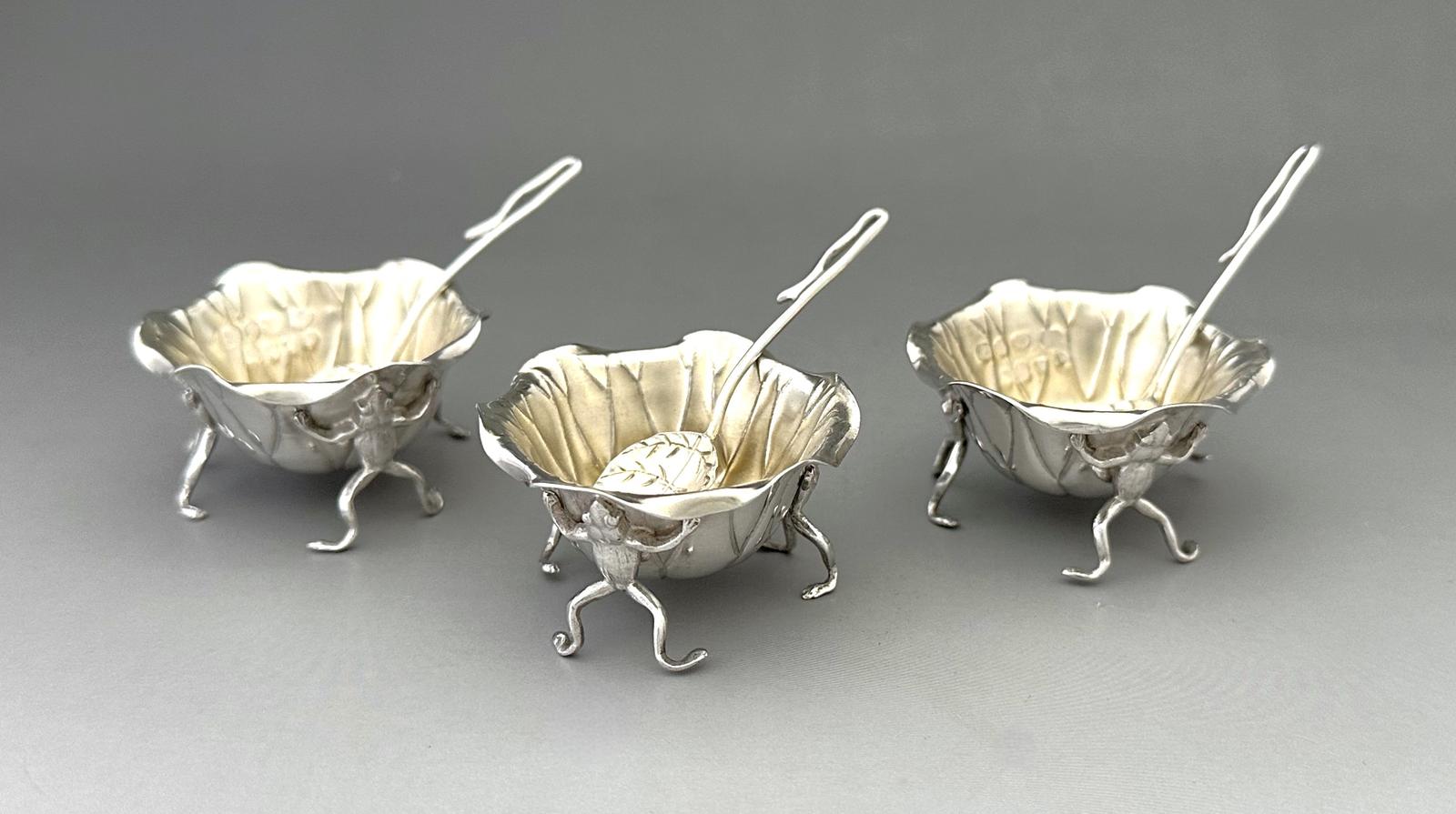 A Fabulous Set of 3 Victorian Silver Naturalistic Novelty Salts