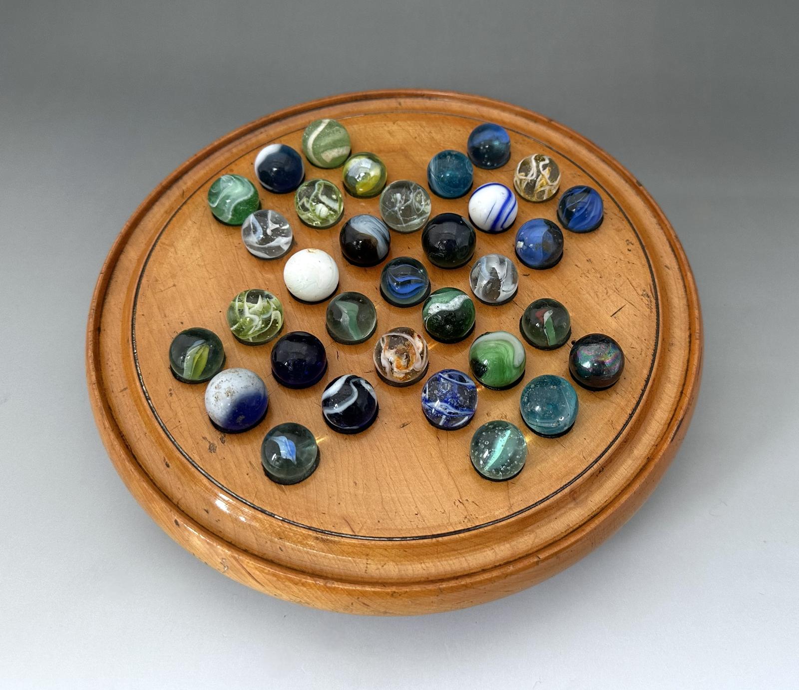 An Attractive Victorian Solitaire Board & Glass Marbles
