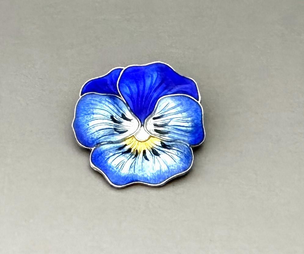 Beautiful Silver & Enamel Pansy Brooch