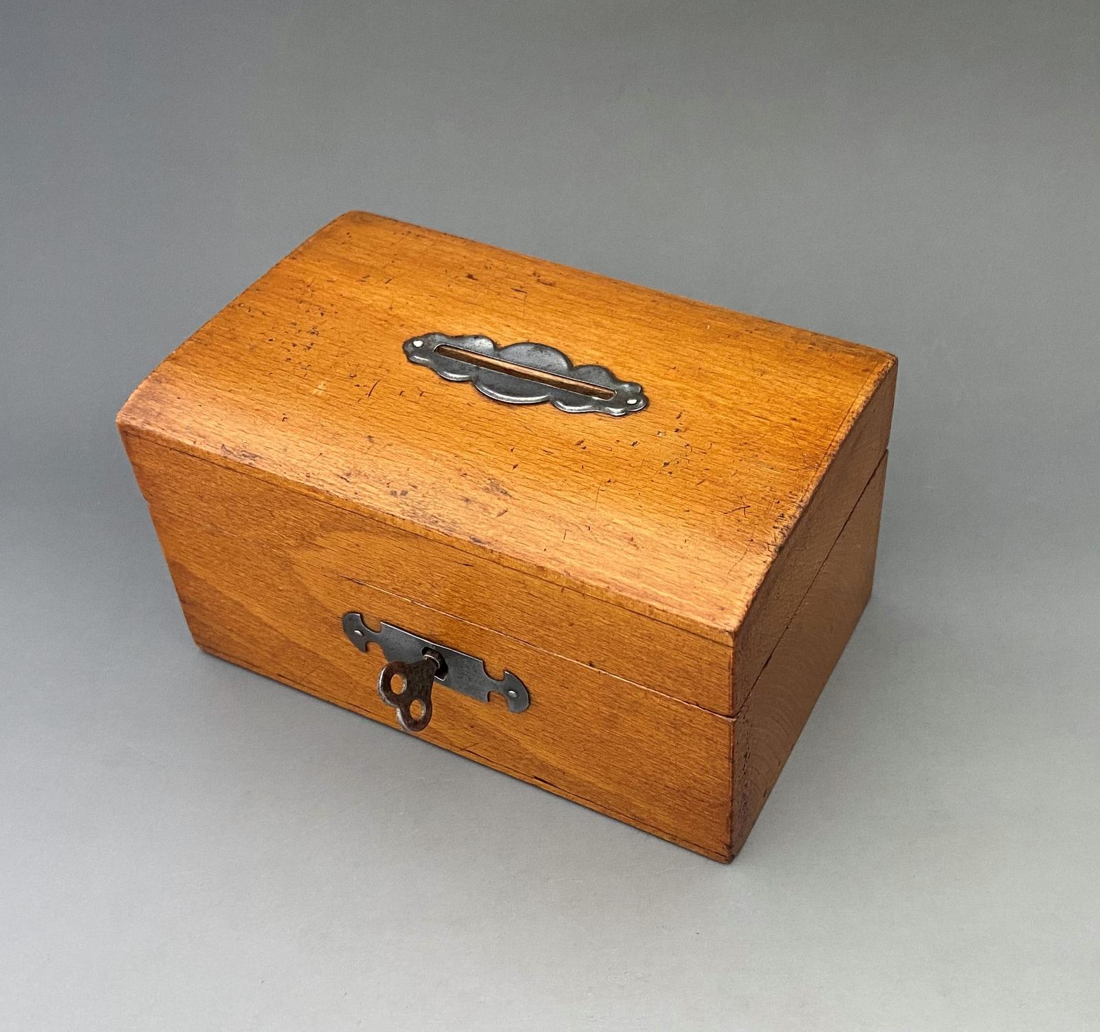 This is a charming solid beech wood money box, dating from the late Victorian period. This sweet example is of a lovely rich colour and has a hinged lid with money slot to the top, with the original lock and key to the front. Both the money slot and lock are finished with attractive shaped mounts and the interior base is felt lined.