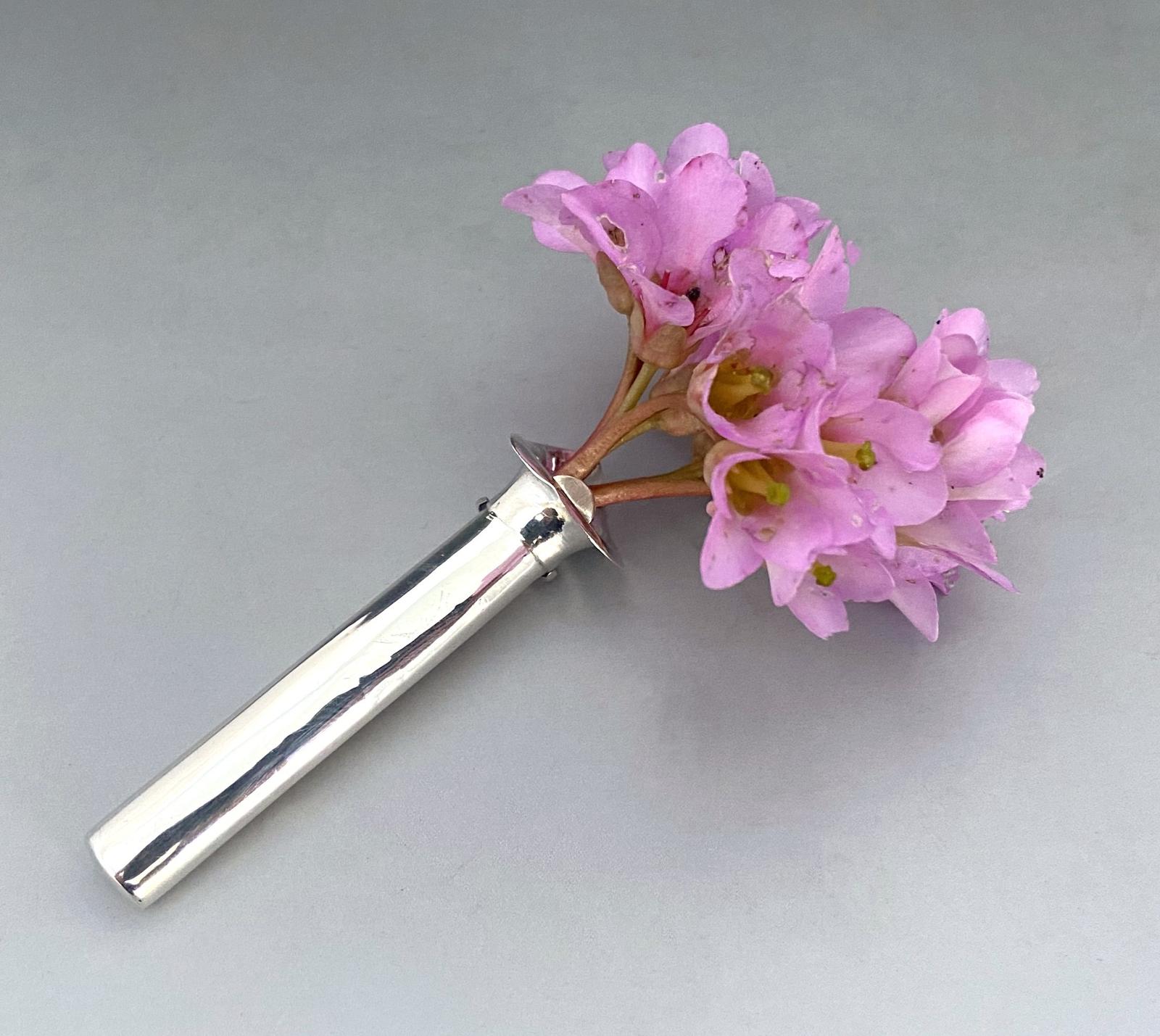 Delightful Edwardian Silver Buttonhole / Lapel Flower Holder
