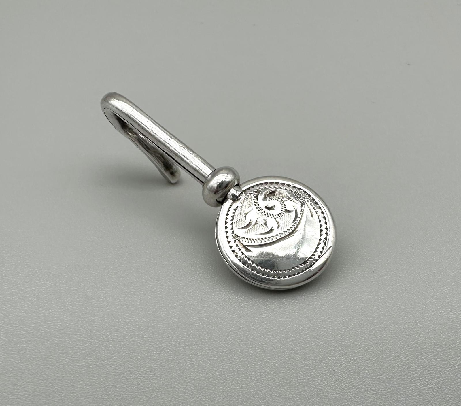 A delightful George V silver napkin/serviette clip of rounded form, with attractive engraved face and half moon vacant cartouche. This useful piece clips to the shirt and the napkin is secured in place between the two leaves. An ideal gift idea, being both usable and collectable.