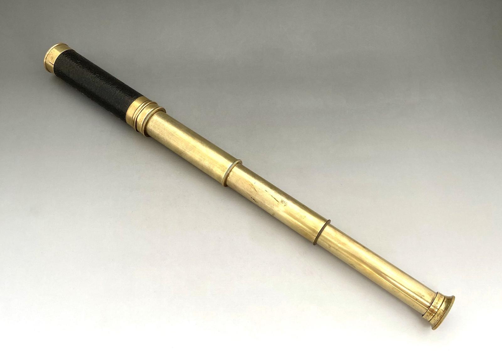 Excellent, with no chips or cracks to the glass lenses. The telescope is clean and in good working order. The brass has a small, shallow dint to the middle draw, commensurate with age and use.