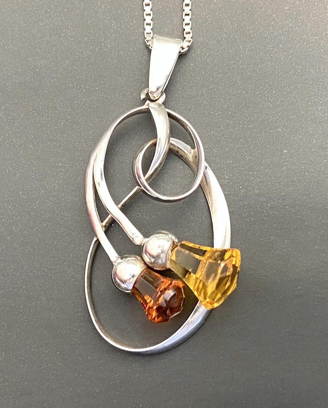 A most attractive silver pendant by the collectable Charles Horner, assayed at the Chester office. This gorgeous example is styled in the Art Nouveau taste, with sweeping sinuous lines. The pendant features two thistle mounts set with Citrine paste stones and is fully hallmarked to the reverse. Presented here with a Sterling silver box chain, it is a ready to be worn and enjoyed. A great gift idea and addition to any collection.