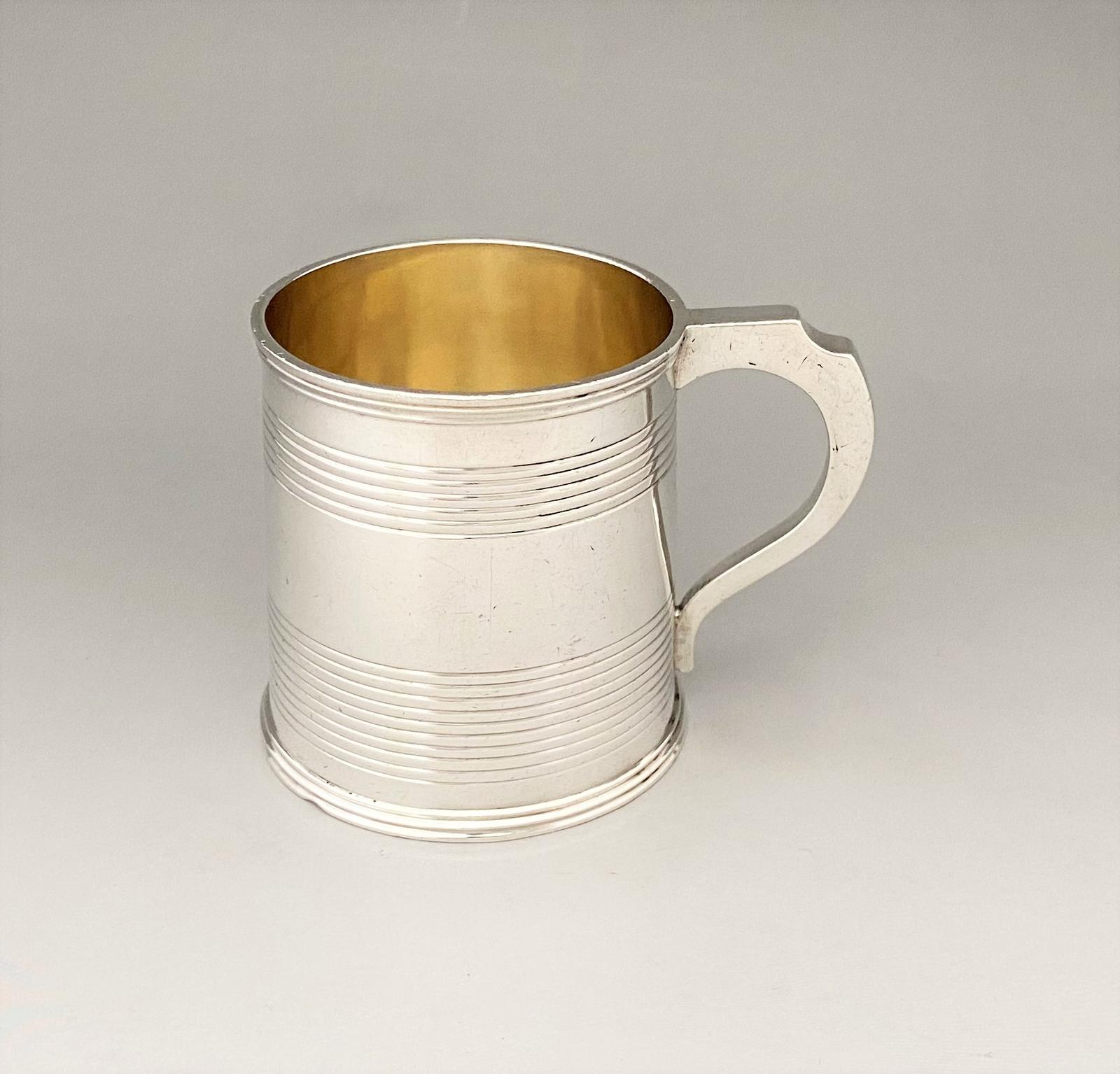 A lovely Georgian Regency silver tankard of petite proportions. Created in the tradition style of the era, this charming example has twin bands of reeding to the body and the inside is fully gilded. The gauge of the silver is excellent and the overall effect is charming. A lovely and collectable gift idea.