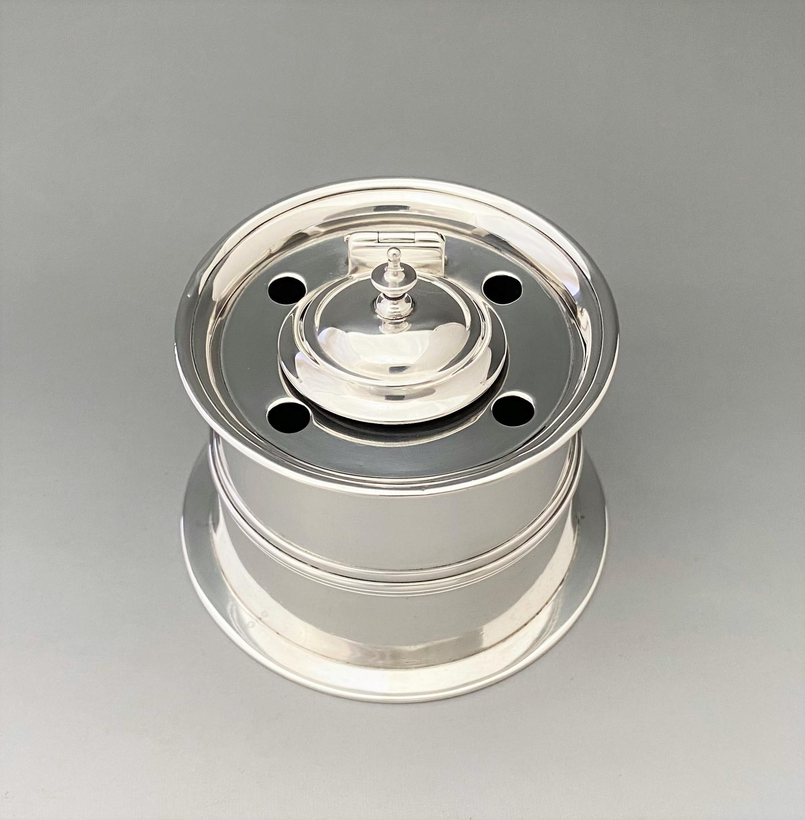 Superb Edwardian Chester Silver 'Fishing Reel' Inkwell