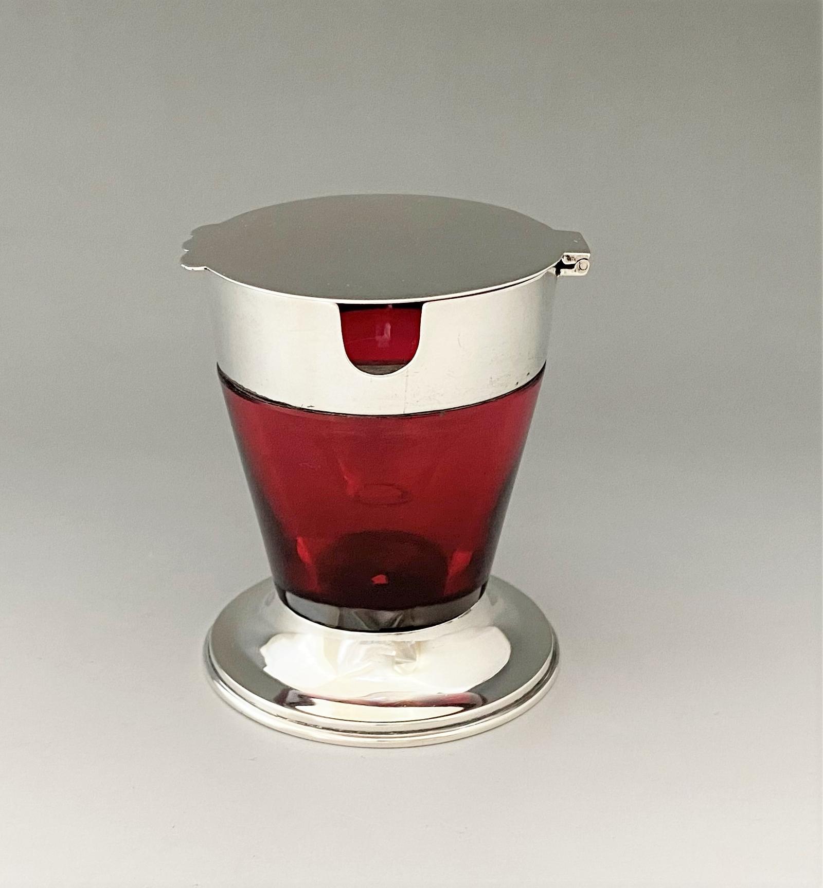 Unusual Edwardian Silver & Ruby Glass Inkwell